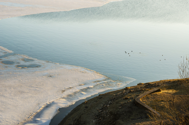 “Siamo fortunati – aggiunge Filomena – perché il paesaggio è talmente bello che, nonostante tutto, è frequentato”. Guarda poi il lago ghiacciato: le increspature della coltre bianca, i cerchi morbidi disegnati sulla superficie e le fratture nette si colorano con il calare del sole. “Oggi è davvero bellissimo – dice – ma ti posso assicurare che non c’è giorno in cui appare uguale al precedente”.