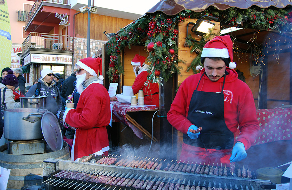 ROCCARASO – Sono le undici di mattina e i primi turisti arrivano nella piazza di Roccaraso (L’Aquila), dove il mercatino di Natale, musica dal vivo, vin brulé e caldarroste li attendono per iniziare la giornata. A mezzogiorno a godere dell’aria fredda e tersa ci sono tutti: le persone del posto, chi torna annualmente da Napoli o Roma e i viaggiatori giunti da Sulmona a bordo di un treno d’epoca, sui binari della Transiberiana d’Italia.