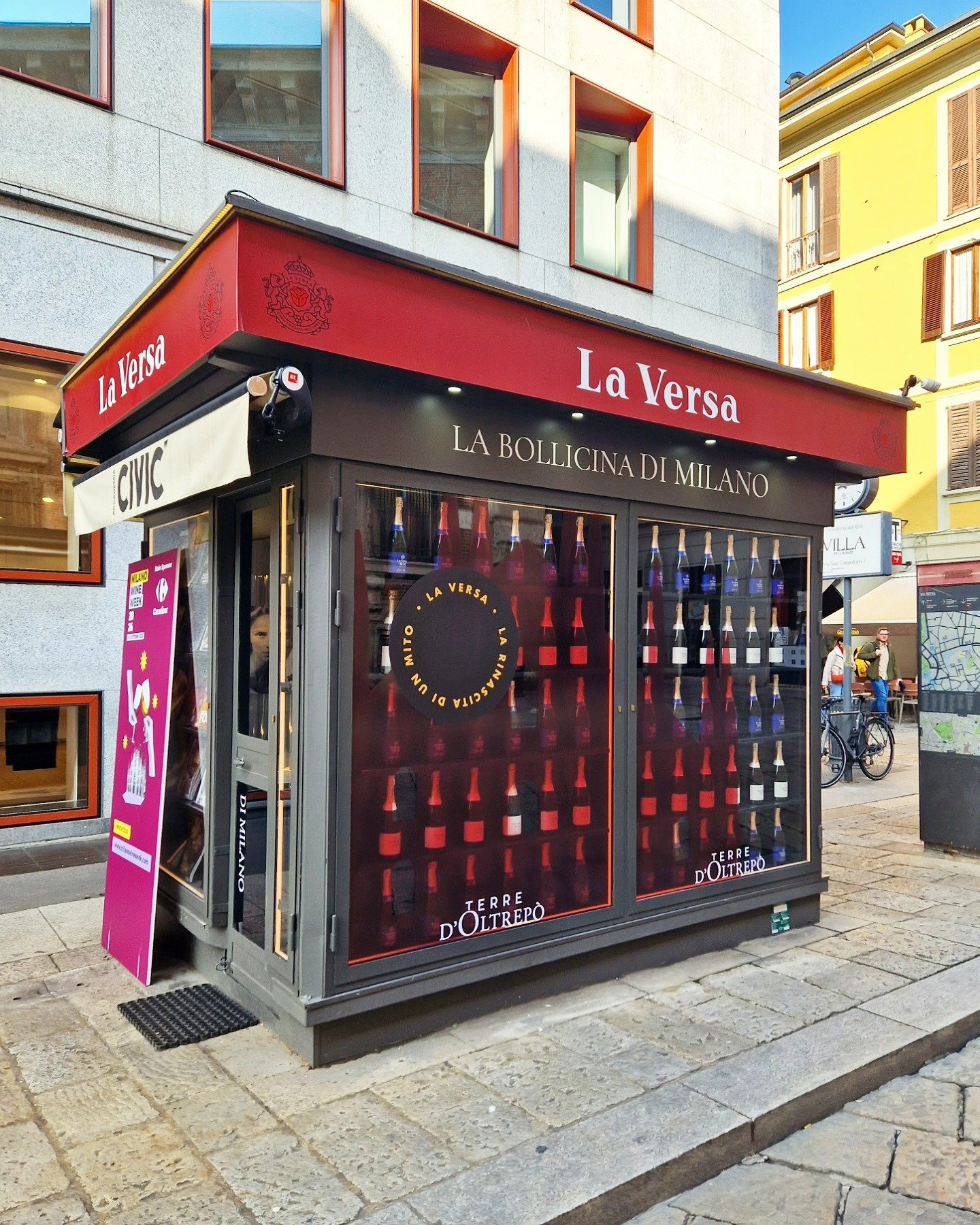 La Versa è considerata la prima azienda storica legata al metodo classico, ma ci si è resi conto di quanto fosse necessario “rispolverare il brand tornando agli anni ’80 e ’90, quando il mercato milanese era un grande sbocco commerciale”. Con la realizzazione dell’edicola Civic Accademia dedicata a La Versa si è compiuto un passo verso quest’obiettivo: “Ci troviamo in un contesto bello, con un design arricchito da bottiglie illuminate e libri d’arte per richiamare il legame con la Pinacoteca di Brera – situata a pochi passi dall’edicola”. In questo ambiente “arrogante, ma senza malizia” è possibile degustare e acquistare i prodotti della cantina dal 5 al 13 ottobre, dalle 9,30 alle 19,30.