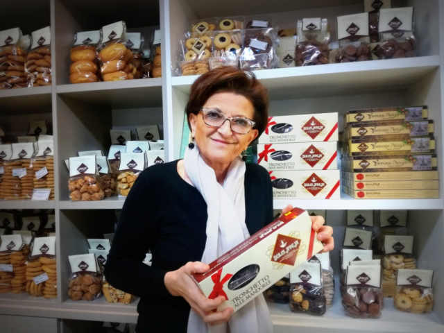 “La ricetta del torrone, scritta a penna tra le pagine invecchiate del ricettario di famiglia, è stata rispolverata dieci anni fa”, racconta a Virtù Quotidiane l’infaticabile Maria Teresa Spagnoli, titolare insieme al marito Mariano Calvisi, il figlio di Anaide, dell’azienda che, oltre allo storico laboratorio di Cavalletto d’Ocre, ha inaugurato di recente il nuovo punto vendita con caffetteria a L’Aquila, in viale Corrado IV.