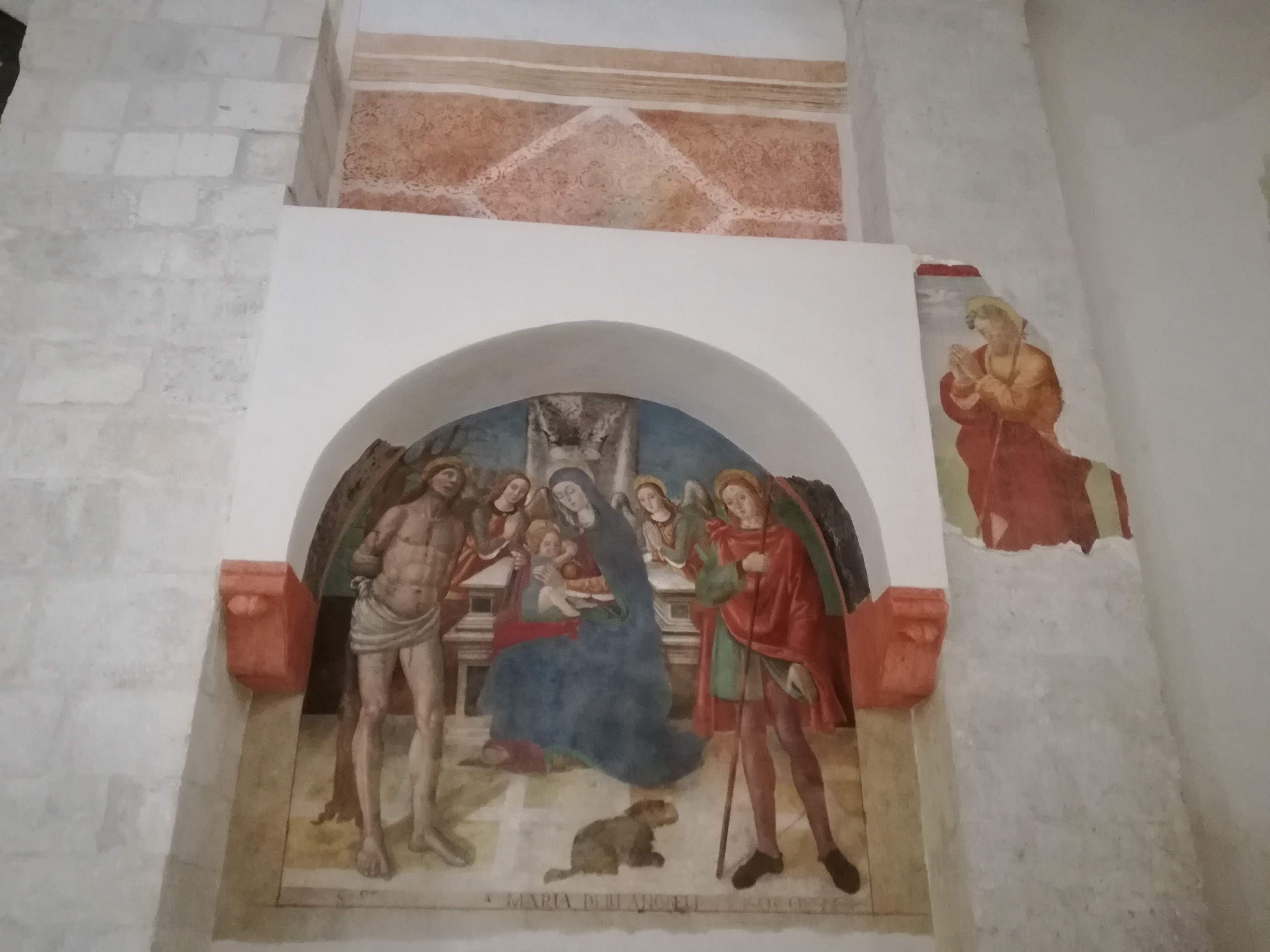 Tra gli affreschi, tanti, presenti in chiesa, ne sono emersi di nuovi: nella parte alta della parete della navata destra e nella lunetta decorativo sul portale (che resta quello originale del 1529).