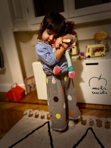 Tra le ultimissime novità Melacucita, le gonne pantalone, identiche per mamma e figlia, con tanto di frontini abbinati con fiori applicati in perfetto stile Frida.