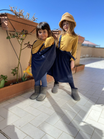 Muse ispiratrici e principali modelle di Carmela sono le sue dolcissime nipotine, Carlotta di 5 anni e Matilde di 3, figlie di Vera, per le quali inizia a cucire dapprima copertine e magliette per poi via via dedicarsi agli strepitosi abiti che oggi rappresentano il suo pezzo forte.