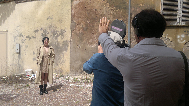 Poi iniziarono le riprese, che per il gruppo di aquilani riguardarono prevalentemente Piazza San Marciano, che all’epoca versava in condizioni davvero precarie, con macerie e distruzione ovunque: gli attori vennero chiamati a recitare all’interno di una sorta di gabbia, con i mezzi di ripresa audio e video sempre in funzione.