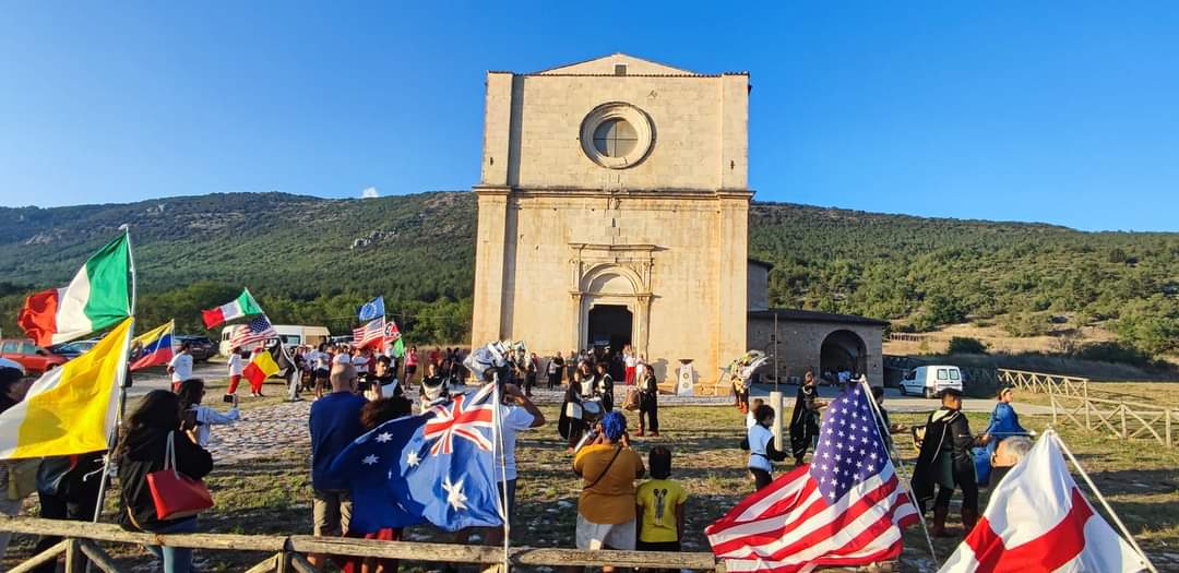 Quella pace che simbolicamente veicolano i bambini i cui passi tra le bandiere internazionali poste davanti alla chiesa da Angelo Giordani suonano come un controcanto a tante narrazioni che l’attualità restituisce. “Ci stiamo abituando a sentire parlare di bambini massacrati dalle guerre. Non c’è più nessuno che piange per un bambino morto sotto le bombe: accogliamo immagini e notizie quasi con indifferenza”, sottolinea, davanti ai sindaci della zona, Paolo Giorgi del Movimento Celestiniano dall’altare di Centurelli. Di qui la scelta di mettere davanti bambini e ragazzi, molti di loro giovani runner di Atletica Abruzzo L’Aquila e Atletica L’Aquila. Il loro è un controcanto di speranza e di rinascita, oltre la guerra, la violenza e i segni del sisma a quindici anni dalla scossa del sei aprile.