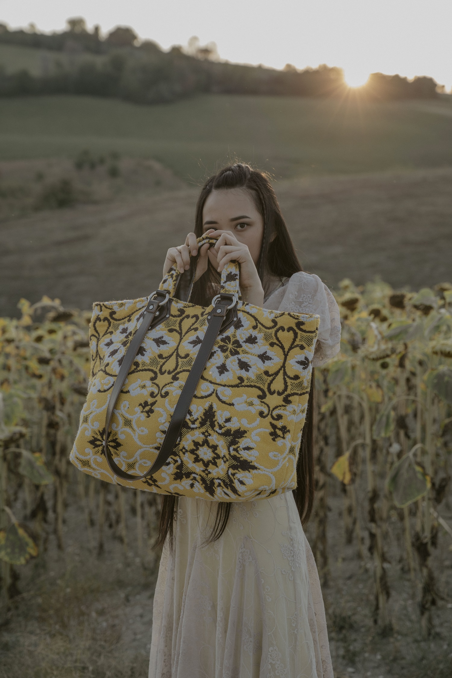 ROSETO DEGLI ABRUZZI – C’è la tipica coperta abruzzese. Ci sono le tele tessute a mano. I damaschi. Gli arazzi. Ogni tessuto scelto appartiene a un bagaglio culturale da recuperare, dando vita a una collezione che è tradizione, storia, ma anche sostenibilità. Ovvero, “salvaguardia dei valori”, per utilizzare le parole della creatrice.