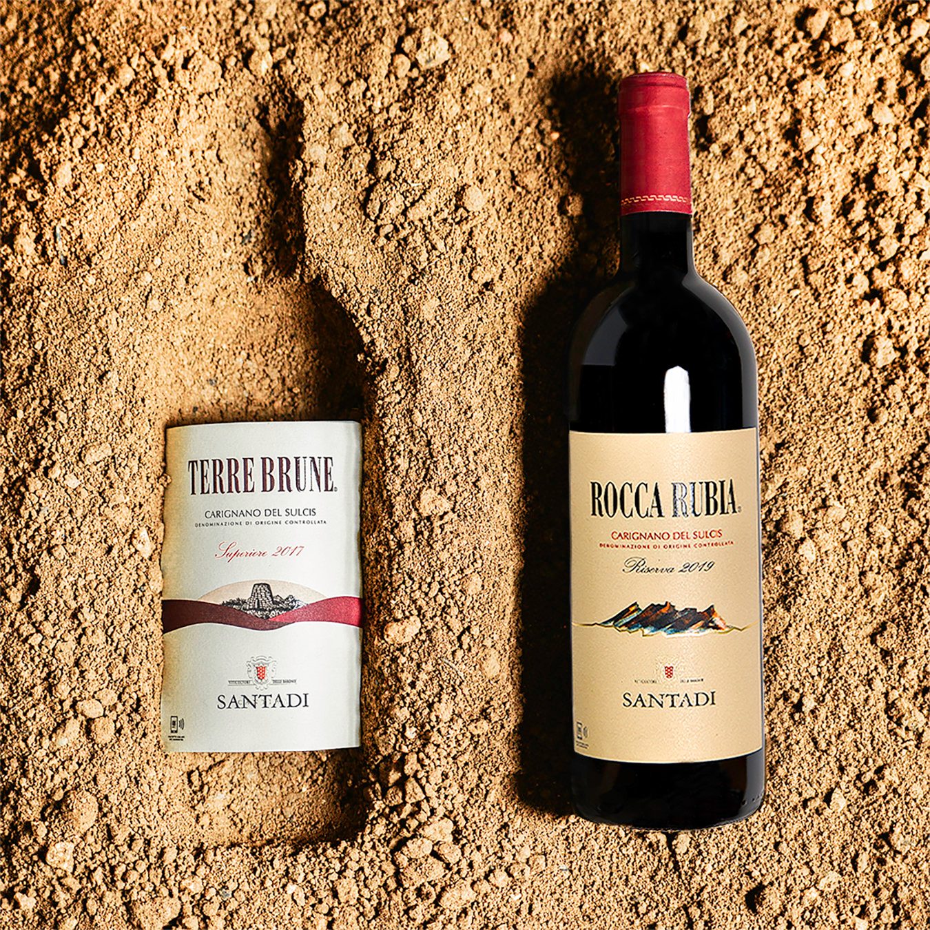 Tra le etichette più emblematiche spiccano il Terre Brune, simbolo assoluto del Carignano del Sulcis, e il Rocca Rubia, rosso dal carattere deciso che ha conquistato critici e appassionati.