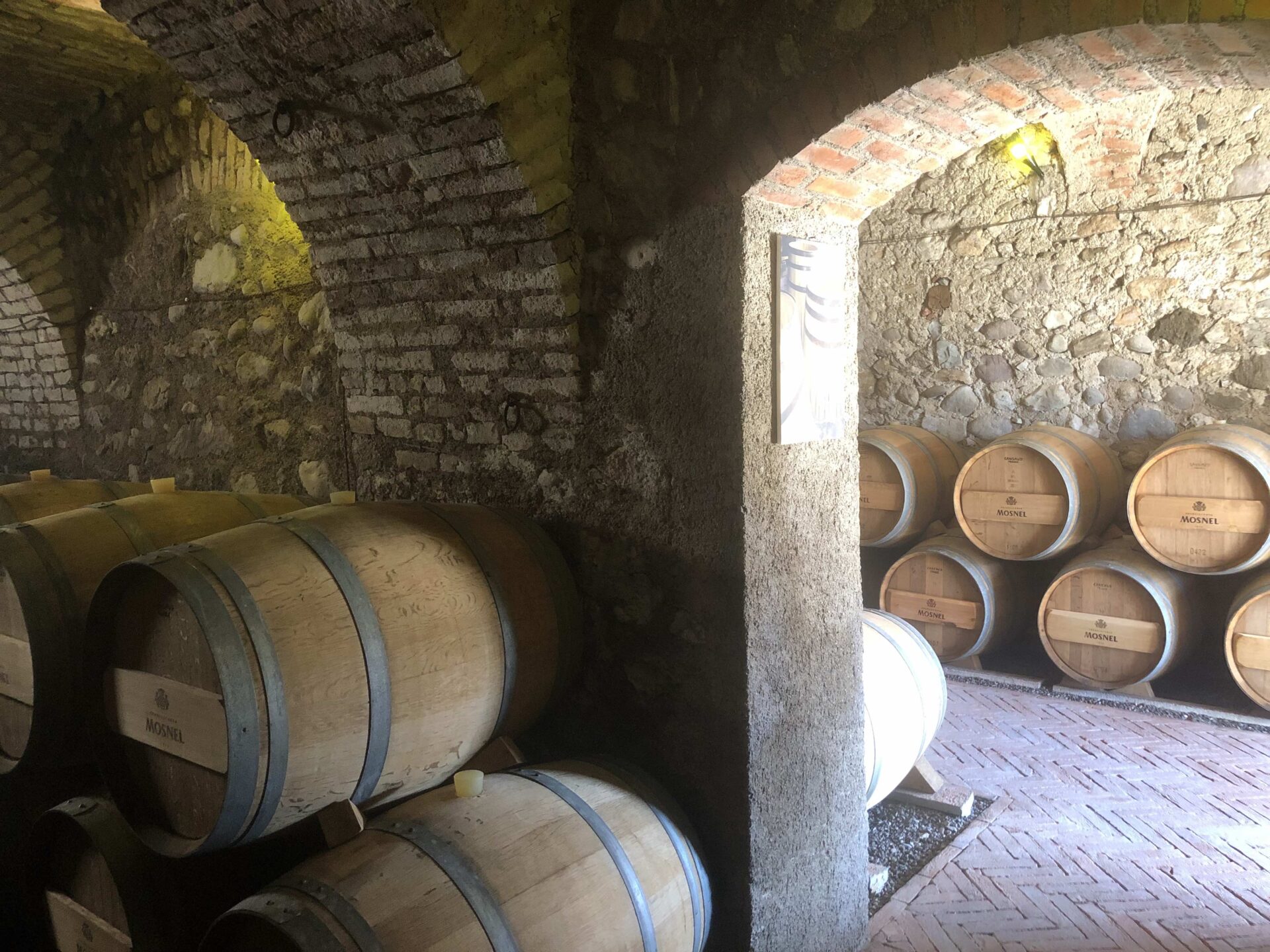 Le scuderie si sono trasformate in parte nella barricaia dove maturano i singoli vini base che andranno a formare le pregiate cuvée aziendali mentre gli archi in mattoni incorniciano impressionanti pareti di bottiglie, pazientemente ordinate ad affinare.