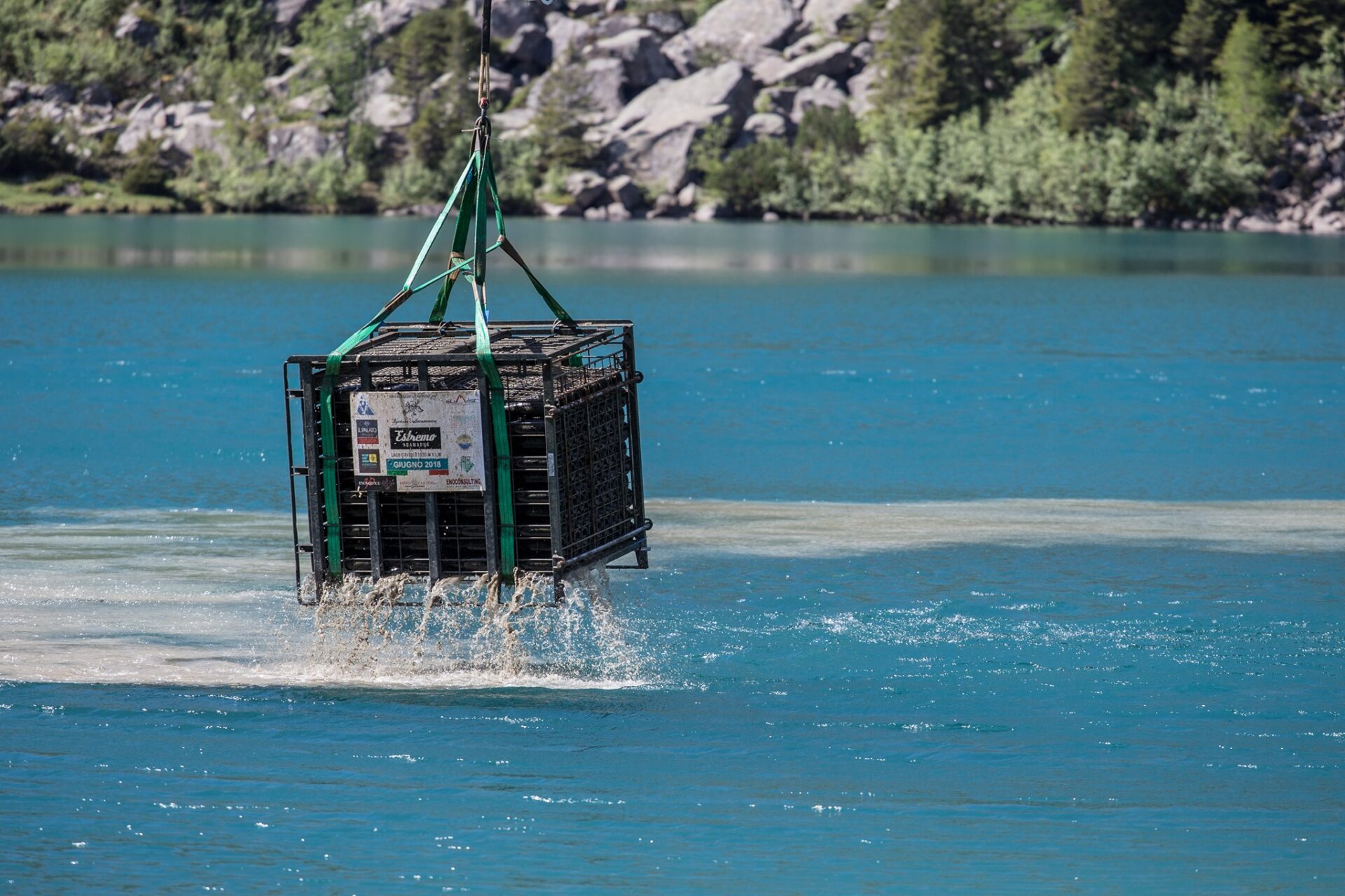La temperatura dell’acqua è di due gradi e il piccolo lago, semi artificiale, è sempre ghiacciato se non per soli tre mesi all’anno, da giugno in poi, quando Belingheri procede alla immersione. Su una profondità massima di 15 metri, il produttore ha scelto una parte di fondale a 10 metri. Per via di alcuni vincoli, possono scendere solo 2.500 bottiglie ogni due anni.