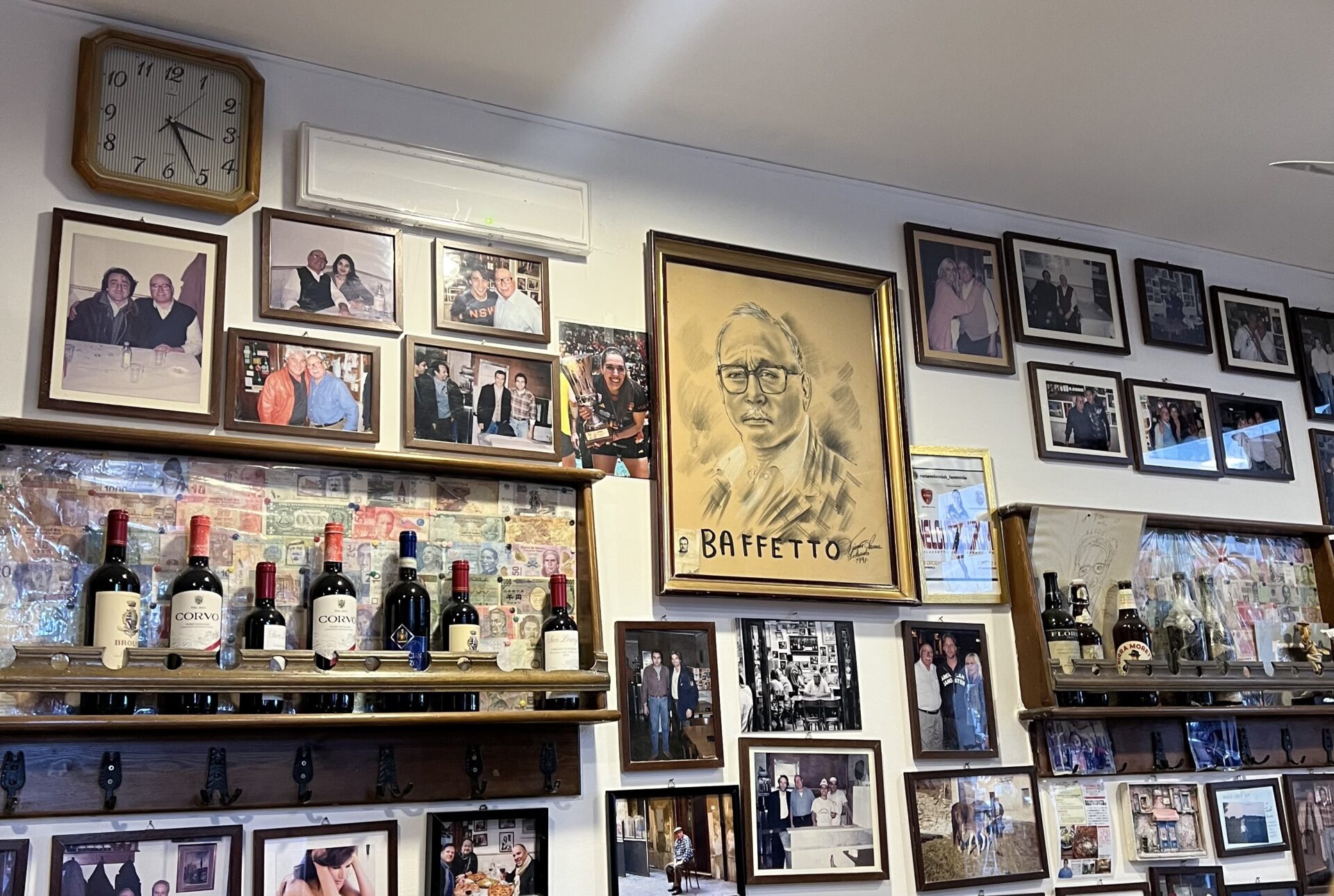 Se altrove l’esibizione dei “vip” può suonare presuntuosa o artificiale, qui sembra piuttosto un archivio di famiglia: più memoria interna che richiamo per il cliente.