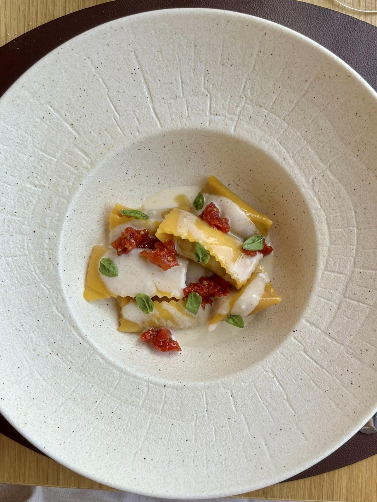 La sorpresa che si avverte appena entrati in Bottega dove ogni minimo dettaglio è curato in modo quasi maniacale, si conferma nel menù, una proposta diversa e convincente. La melanzana, verza e anacardi arriva sul piatto in una struttura che ricorda il tonno. Nel plin la ventricina è “fujuta” ma viene rimpiazzata con una tartare di pomodoro alla vaniglia, bourbon e basilico. Il tortello fondente alla cipolla, cacao, genziana, mela e zafferano lo chef Daniel lo porterà a fine giugno fino in Calabria a Roccella Jonica, al Bob Festival, evento enogastronomico a cui parteciperà in compagnia di tanti chef stellati.