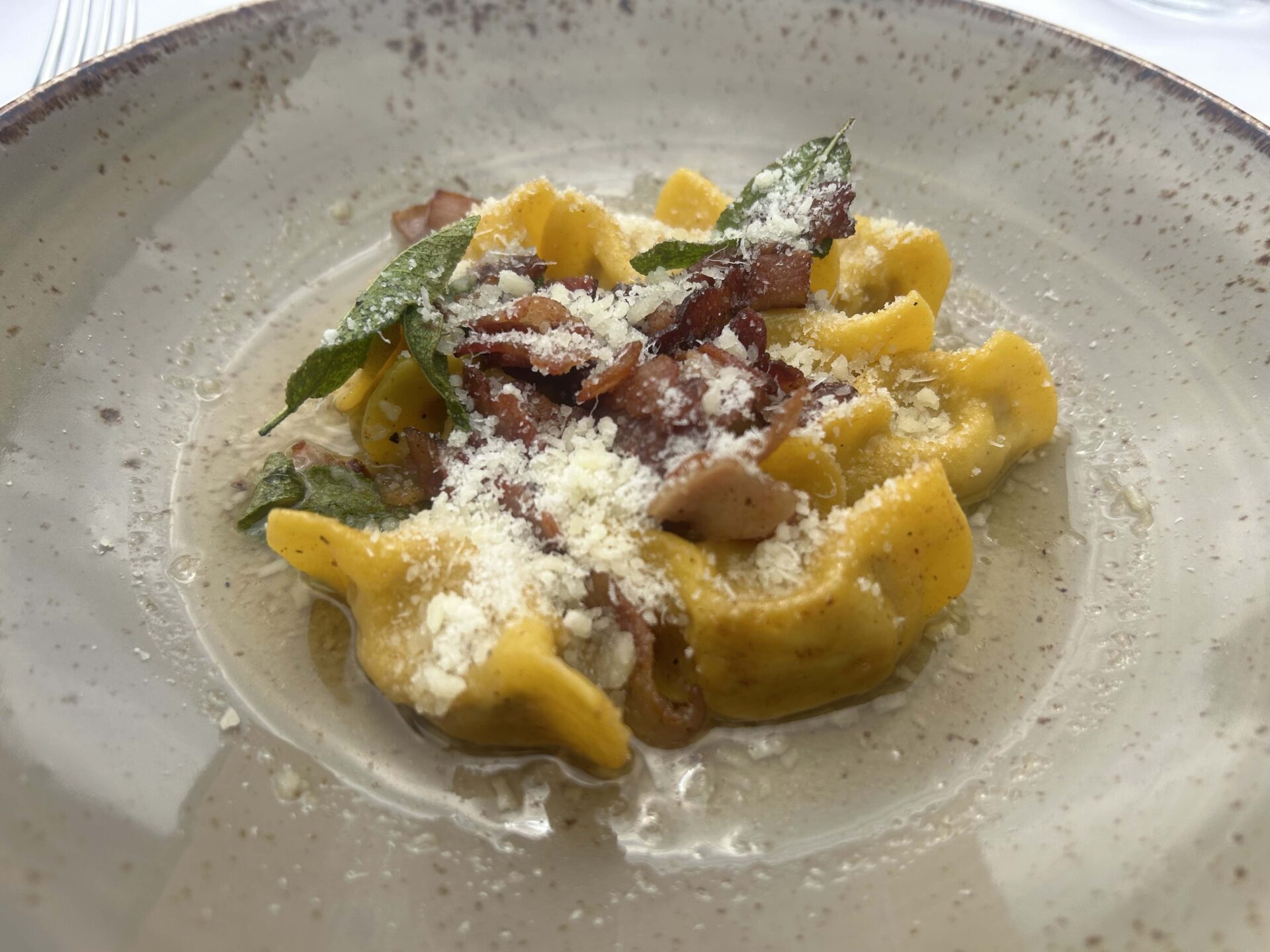 Come dimostrano perfettamente lo spumoso burro di malga montato, da spalmare sul pane appena sfornato per ingannare l’attesa della prima portata ordinata o gli inappuntabili “Casoncelli bergamaschi di Nonna Maria”, conditi da burro fuso aromatizzato alla salvia e parmigiano con pancetta croccante, autentica sintesi di cucina casalinga o la “Tartiflette” tipica dell’Alta Savoia in versione bergamasca con patate, formaggio, cipolla e pancetta condita da una grattugiata di scorzone orobico, piatto di tradizione e innovativo al tempo stesso.