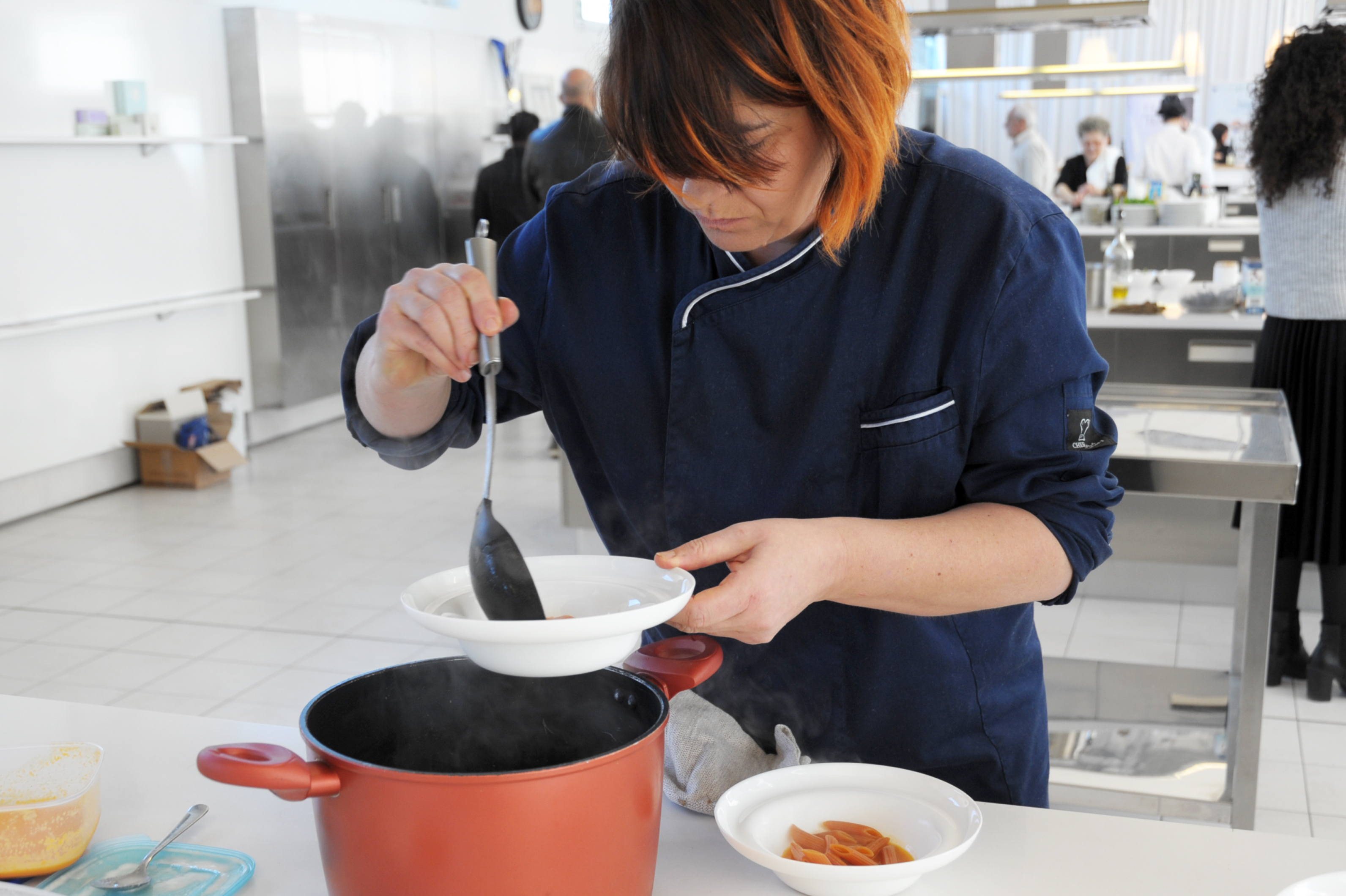 Si è cominciato con la zuppa di pesce e lenticchie di Cinzia Mancini di Bottega Culinaria di San Vito Chietino; l’assaggio è proseguito poi con le sagnitelle alle cicale, pomodorini gialli, ricotta al basilico di Jean Pierre Soria di Cibo Matto di Vasto; con il filetto di sogliola al burro, con spinaci, quinoa fritta, salsa all’aglio e crema di pomodorini confit di Francesco D’Angelo di Essenza Cucina di Mare a San Vito Chietino.