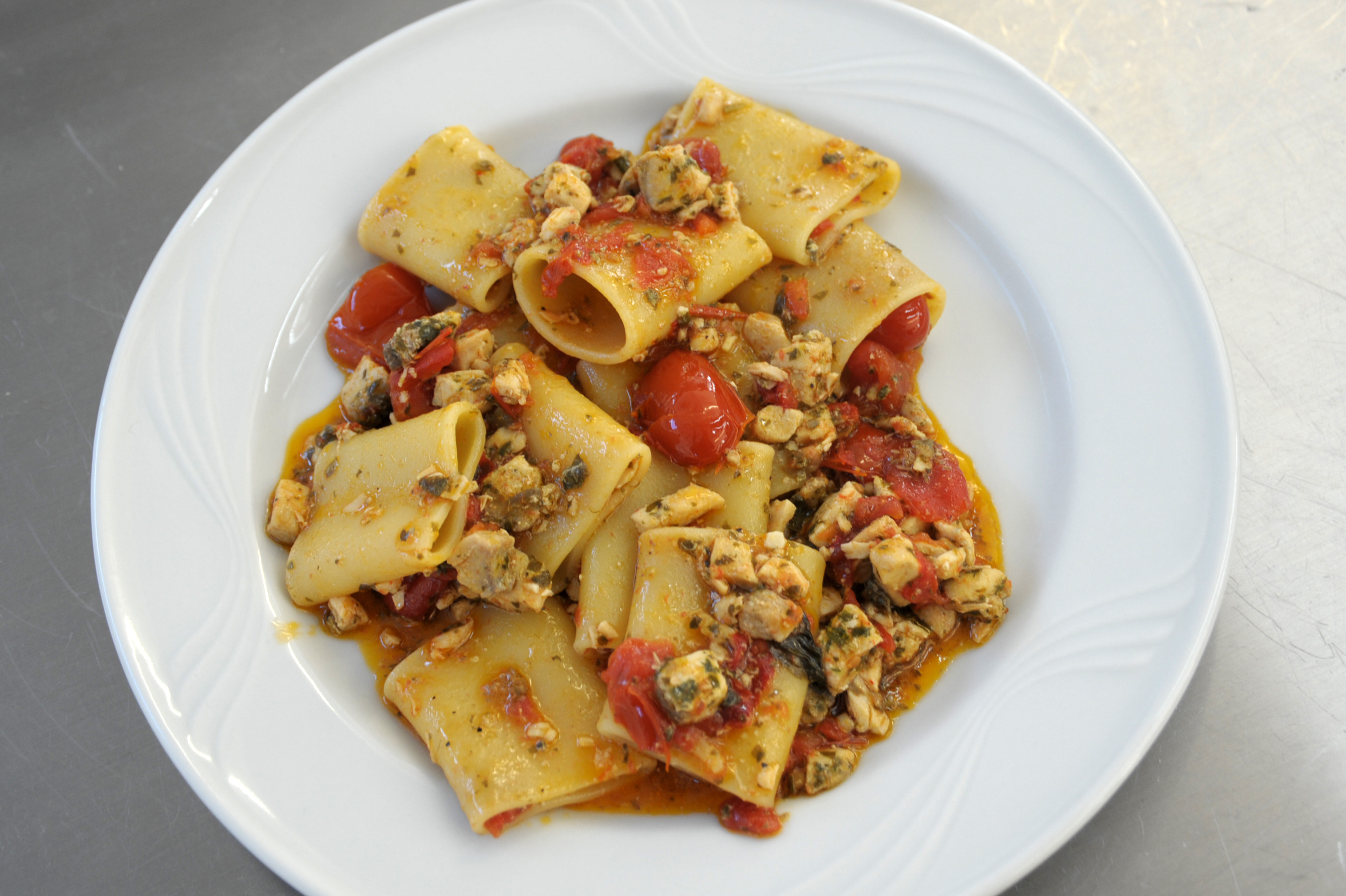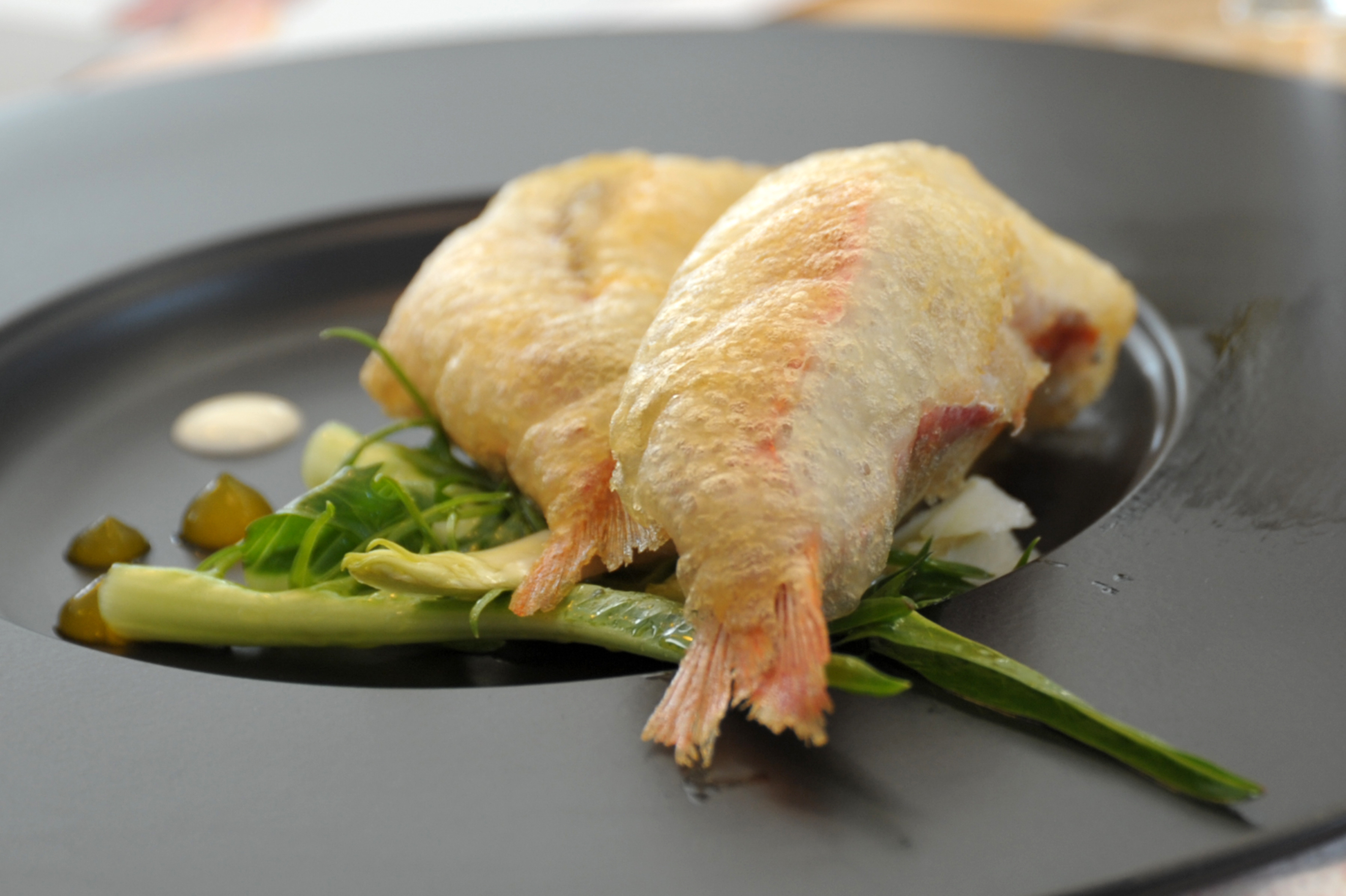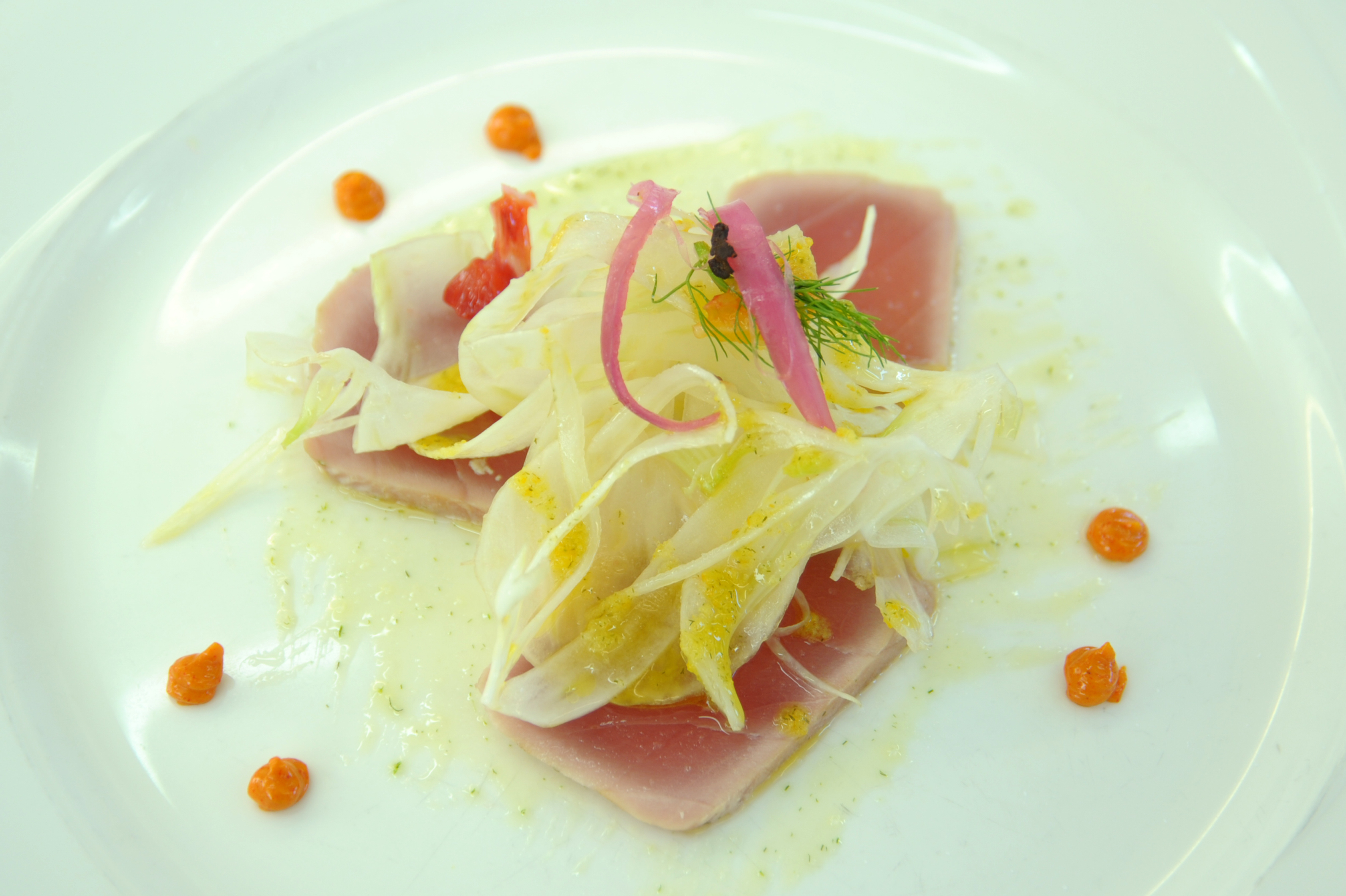 Quarto piatto in degustazione la palamita laccata al miele di Tornareccio, con croccante di finocchio e agrumi e maionese al peperone dolce di Altino, di Marco Caldora del ristorante Caldora Punta Vallevò di Rocca San Giovanni; poi i paccheri alla ricciola al profumo mediterraneo di Gabriella Pantaleone del ristorante Il Sestante di Ortona; per chiudere infine con la triglia in tempura con puntarelle, latte di capra e zafferano preparata da Tiziano Paolini del ristorante Prospettive a Francavilla al Mare. Il tutto accompagnato perfettamente dai vini pecorino, passerina, cococciola e cerasuolo di Ferzo Wines, presentati da Simona D’Alicarnasso.