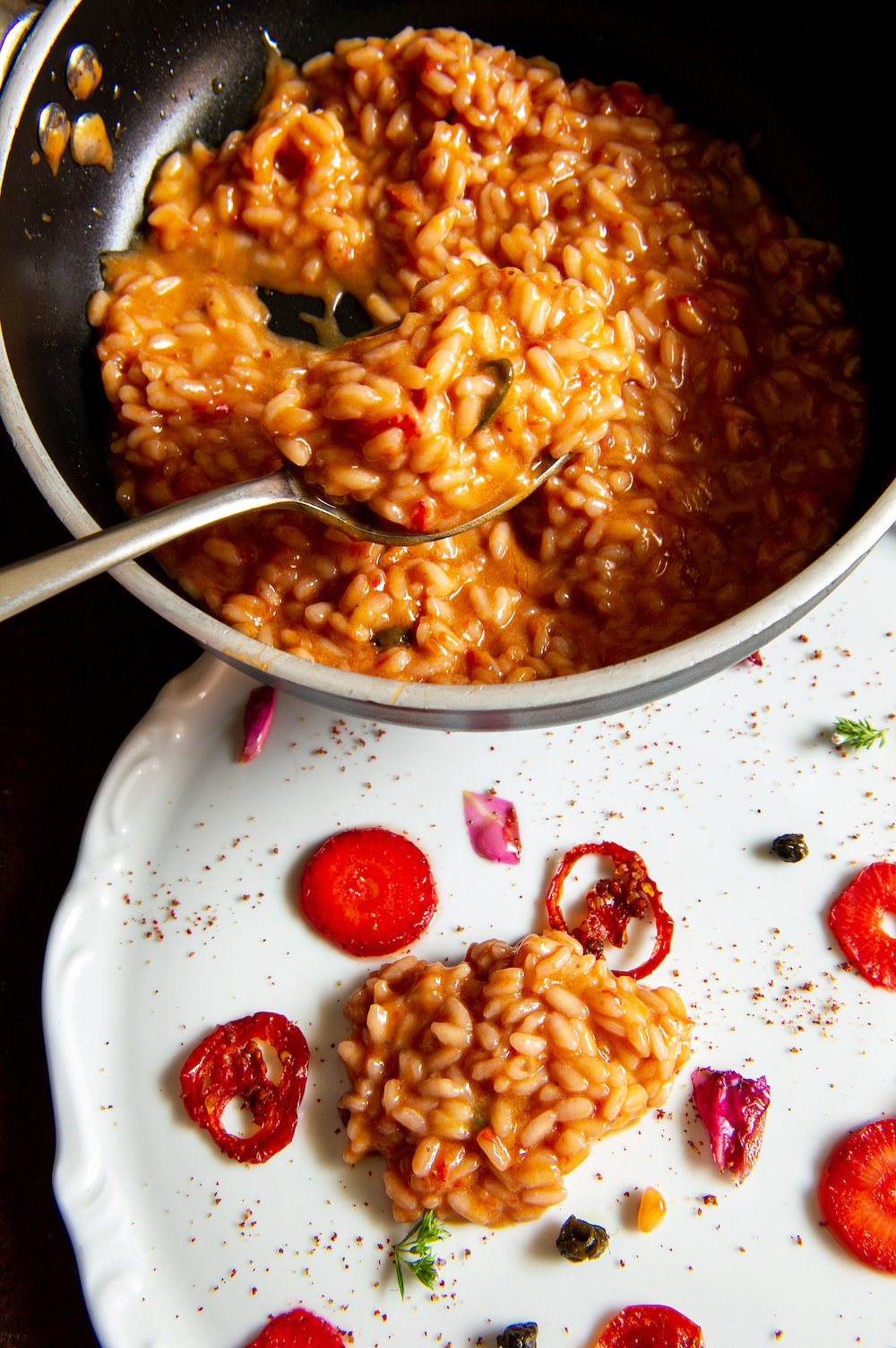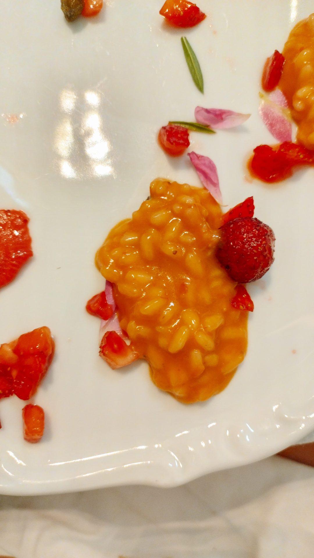 Tutto questo peregrinare non ha fatto altro che accrescere l’identità di una cucina che vuole dar lustro al territorio aggiungendo quei guizzi di personalità che rendono ogni pasto indimenticabile. È frutto del suo ingegno trasformare un Monleale degli autoctoni Vigneti Massa in una granita da servire per aprire le danze di un pasto che accoglierà fra le portate la sua versione di bagna fredda accompagnata da chips di verdure croccanti e il risotto pomodoro, fragole e profumo di rose.